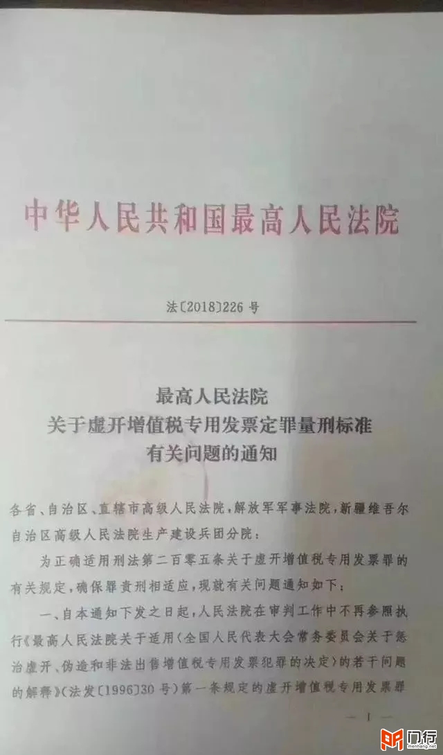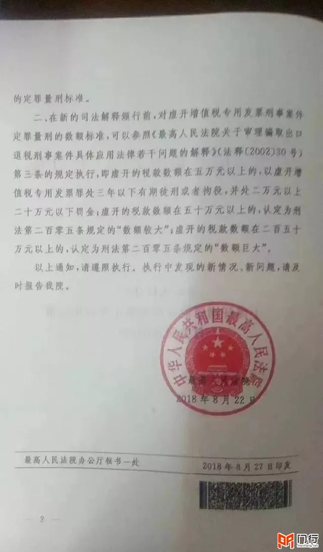 2018年8月22日 ,最高人民法院发布了关于虚开增值税专用发票定罪量刑标准有关问题的通知。(下文有文字版)