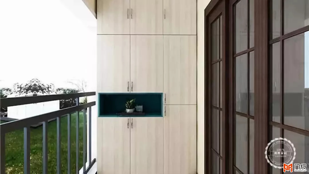 阳台面积小,可以采用开放式的设计,就像这种方案,阳台并没有封窗而是采用开放式的设计,使得阳台显得非常敞亮,阳台采用打柜的方式,将空间很好的使用了起来,丰富的储物空间能够提供非常好的储物收纳能力。