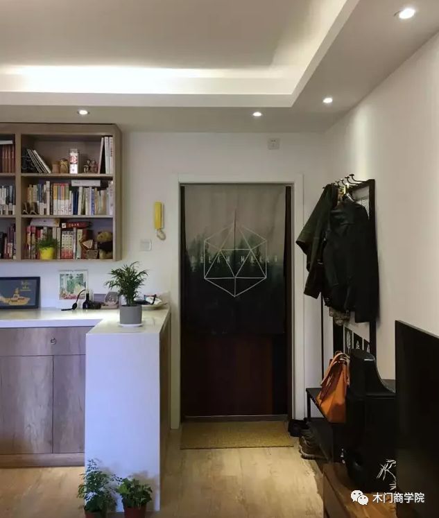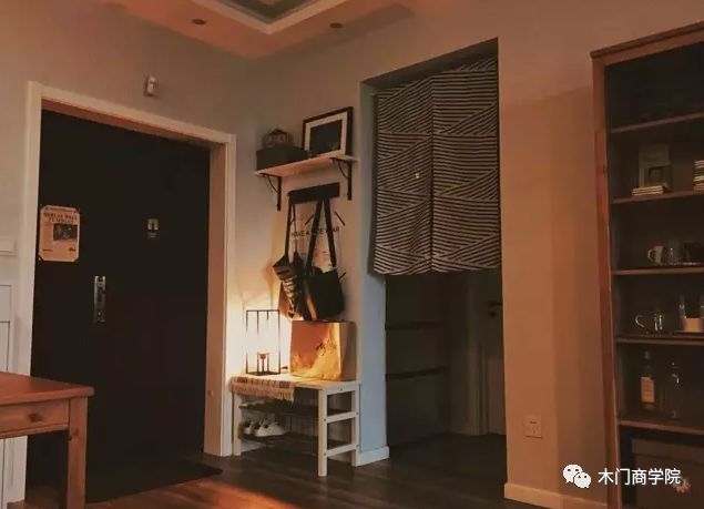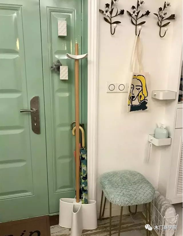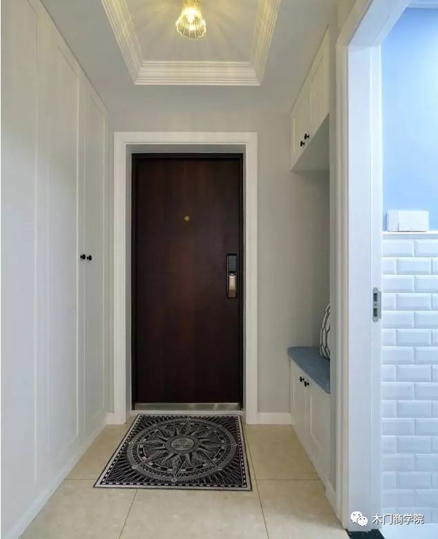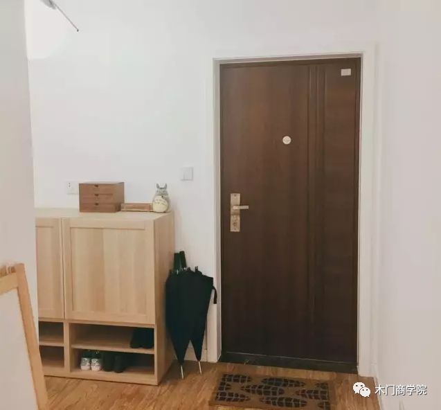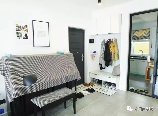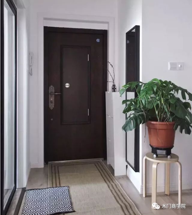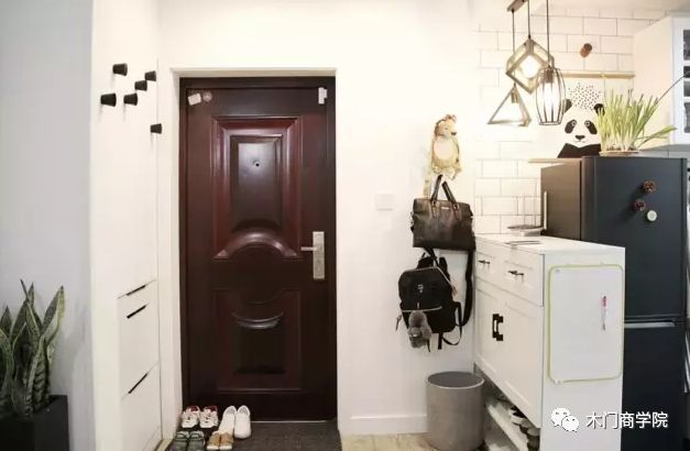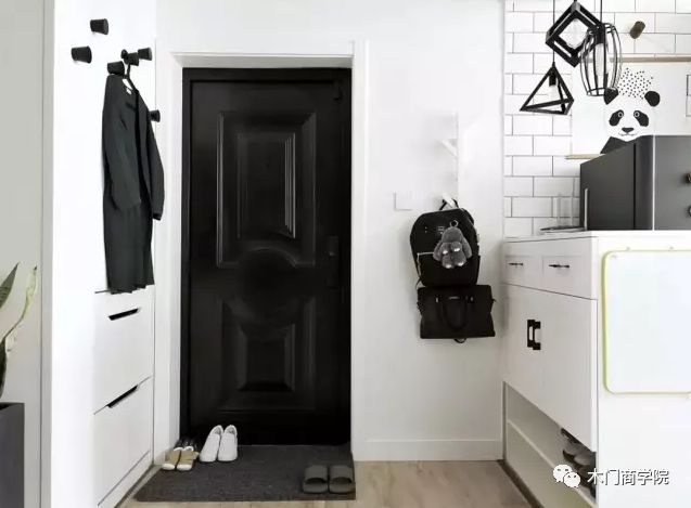 当门与门套迫不得已采用反色的时候,各位可以把门的颜色延伸到室内的家具,比如鞋柜、玄关柜等上面,通过整个空间的颜色搭配来缓和这个视觉感,让反色看起来也更加和谐!